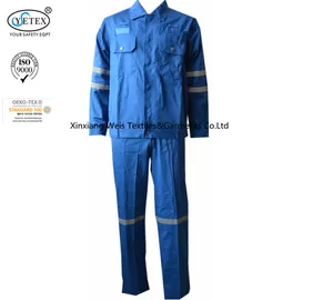 100% Cotton 240gsm Blue Fireproof Boiler Suit With Reflective Anti Static