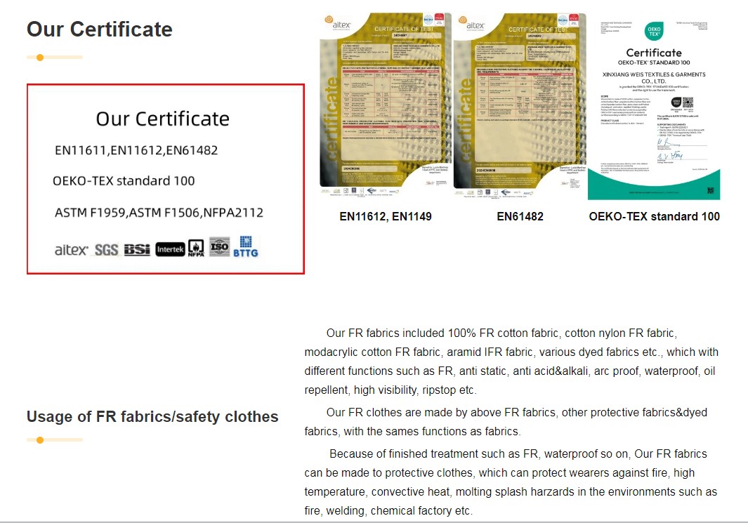 A:For Regular FR treated products MOQ is 3000 meters,For unconventional products MOQ is 5000 meters. Inherently FR fabrics(Aramid and Modacrylic) MOQ is 1000 meters.MOQ of workwear is 500 sets.